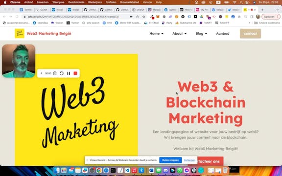 In this video I show you how you can add the Web3-website that you uploaded to the IPFS / blockchain to your marketing profile on ENS / Ethereum, and how you can publish your website to an Ethereum .eth-domainname and share it online.